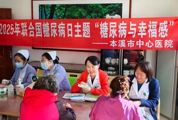 在2025年第19个“联合国糖尿病日”到来之际,2025年11月11日至14日期间,本溪市中心医院内分泌科紧扣“糖尿病与幸福感”年度主题及“了解更多,行动更多,关注职场糖尿病”的宣传口号,积极行动,开展了一系列形式多样的公益活动,将专业知识和暖心服务送到基层医疗机构、老年群体及患者身边。